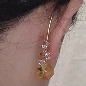 耳たぶに当たる部分には貴和クリスタルソロバン型ビーズを鈴なりに配し、
