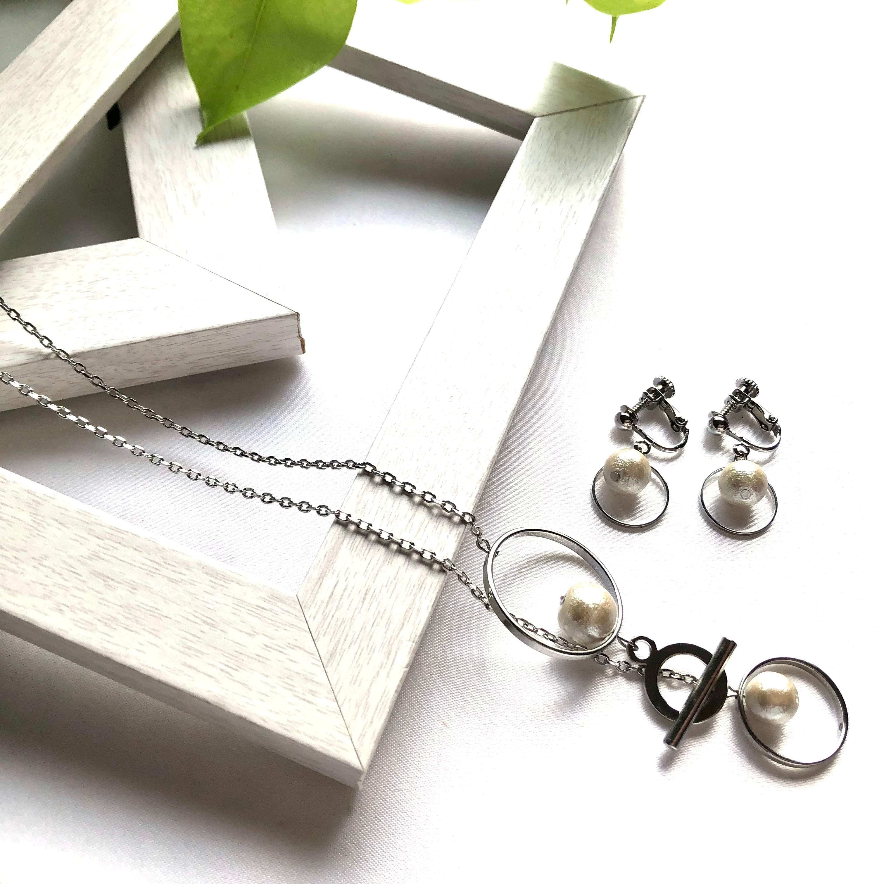 コットンパール使いダブルリングペンダントと一緒にご使用いただくとオフィス仕様にもなります。
