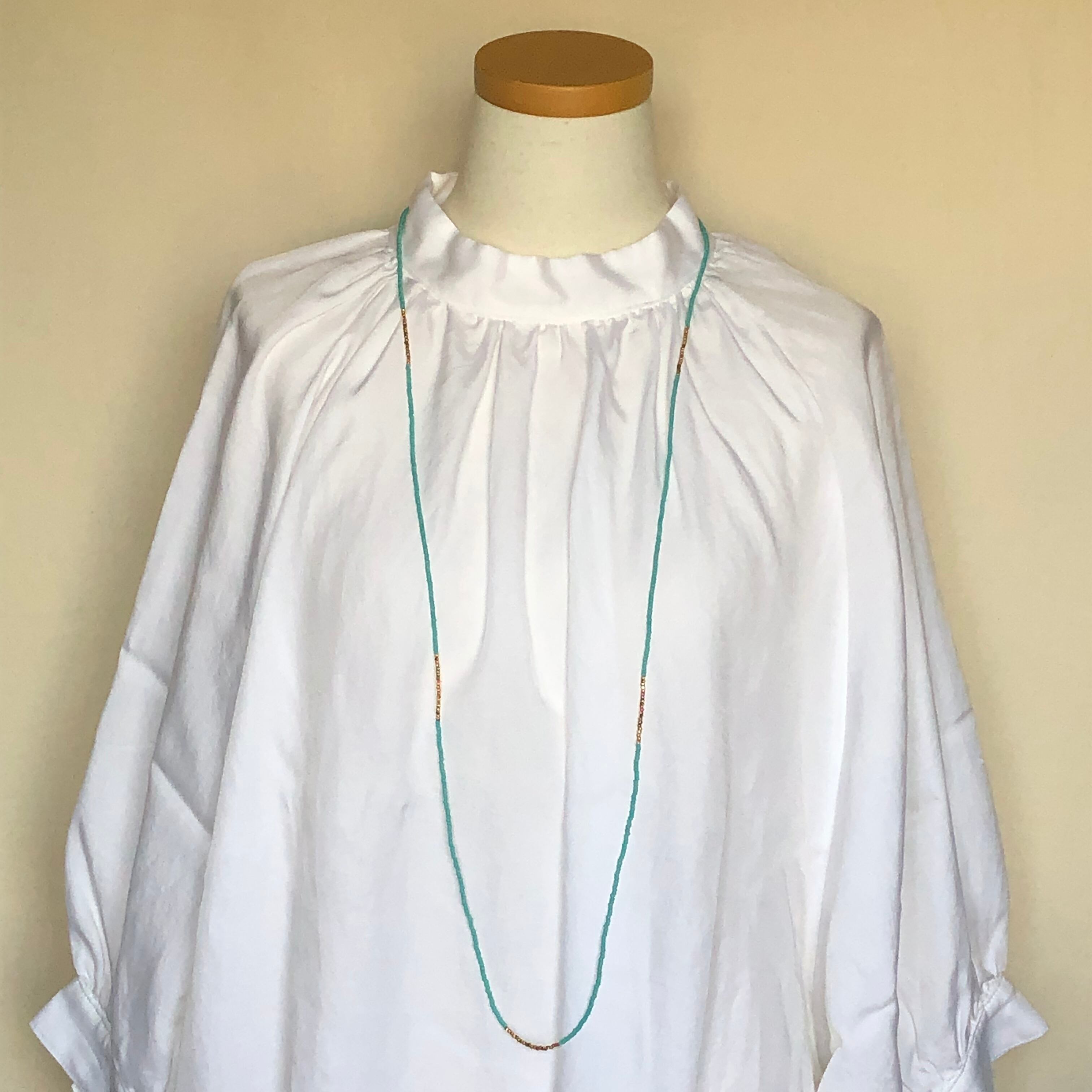 丸小ガラスビーズをふんだんに使用したロングネックレス。
