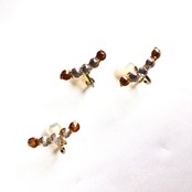2023年の風水のラッキーカラーであるオレンジとグリーン、そして何色にも輝けるクリスタルのフラットバックビーズを三日月を思わせるイヤーカフに仕立てました。並べたビーズの数はもちろんラッキーナンバーの5。金具も今年のラッキーカラーであるゴールドを使用。