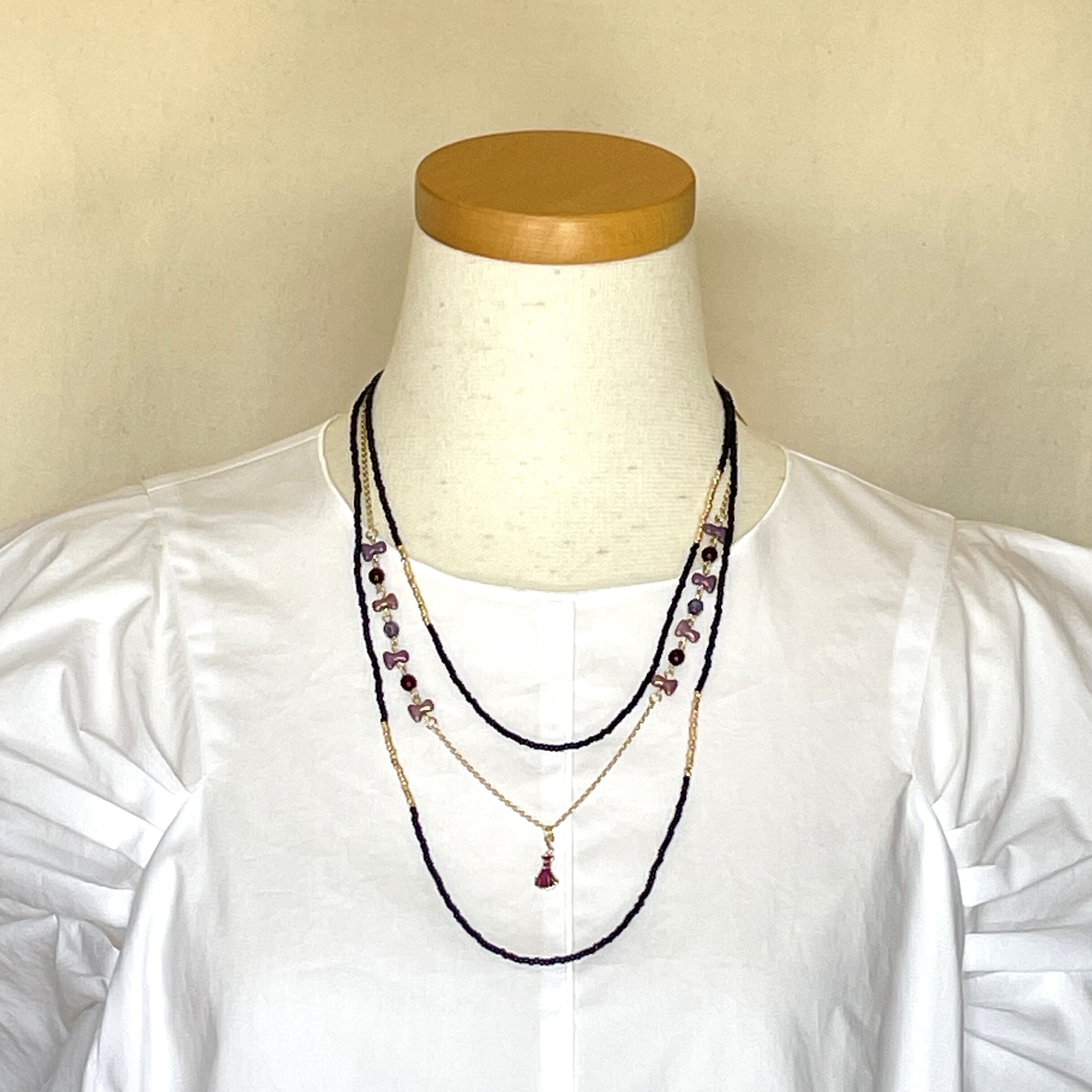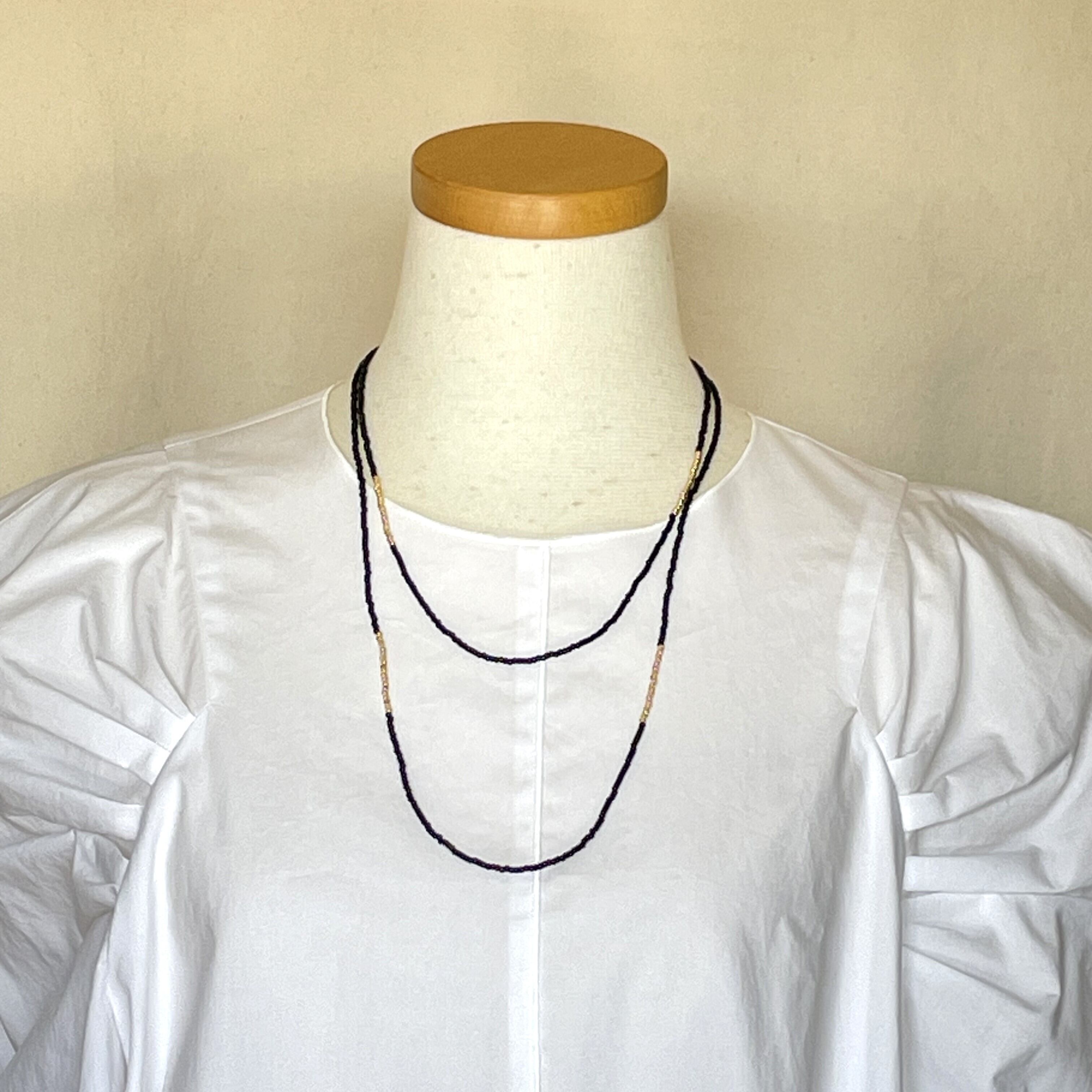 丸小ガラスビーズをふんだんに使用したロングネックレス。