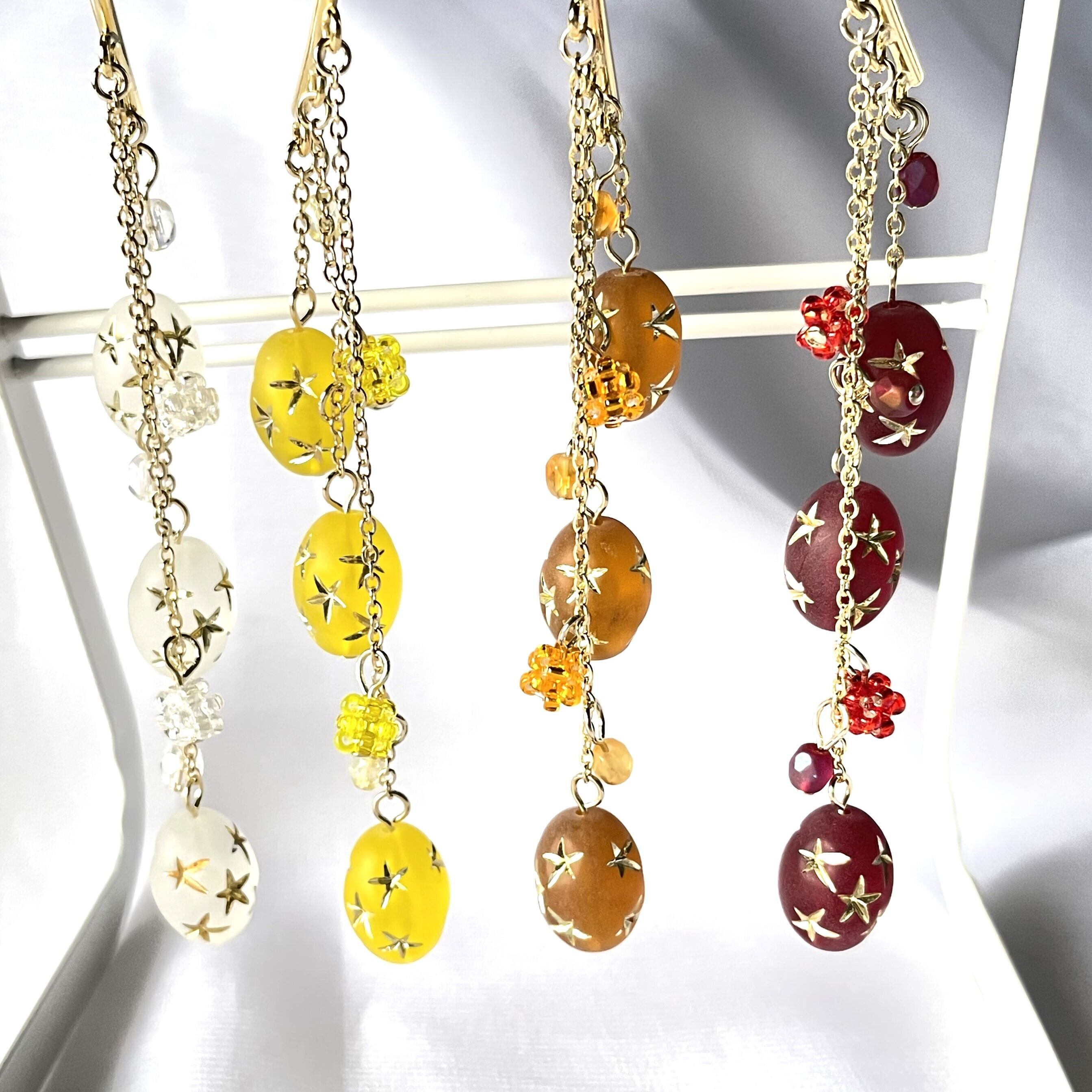 アクリルビーズにはゴールドのスターがいっぱい。さらにウキウキな気分なさせてくれますよ。